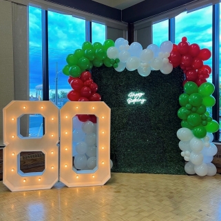 Custom balloon arches, garlands, personalized stacks, and columns designed to create a stunning focal point for your event.